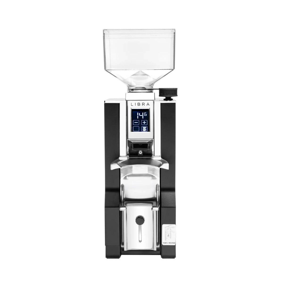 At the heart of the Libra is a set of 55 mm hardened steel flat burrs, engineered to produce uniform particle distribution for balanced extraction and rich flavour clarity. The integrated weighing system automatically stops grinding once the target dose is reached, eliminating guesswork and reducing coffee waste. This makes the Libra ideal for home baristas seeking café level results, as well as low volume commercial settings where speed and consistency matter.